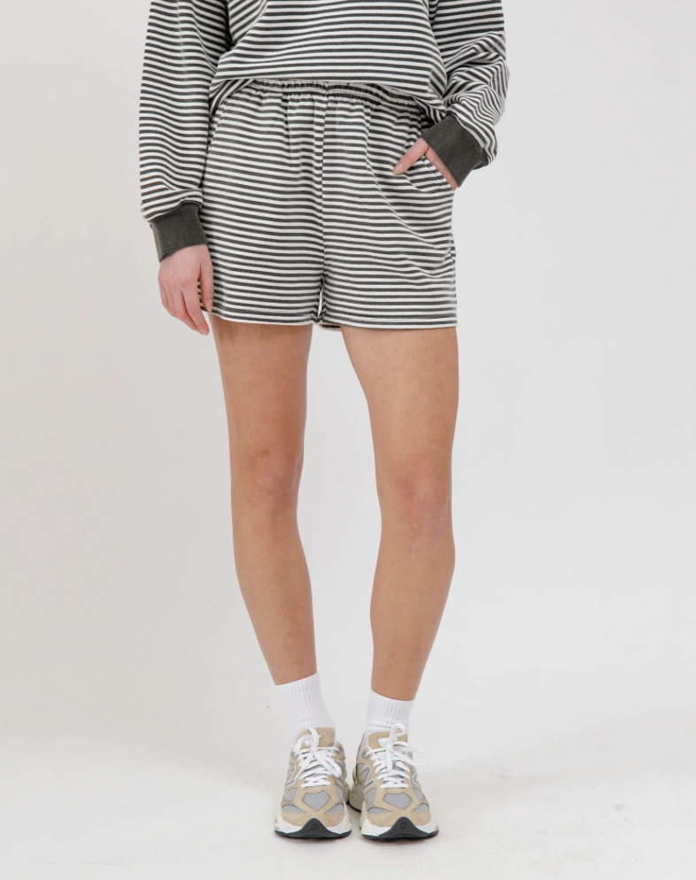 Our Core Stripe Short is a take on our classic Shorty. It's a relaxed fit that sits on the lower waist with lots of room in the thigh.Color: Black & White