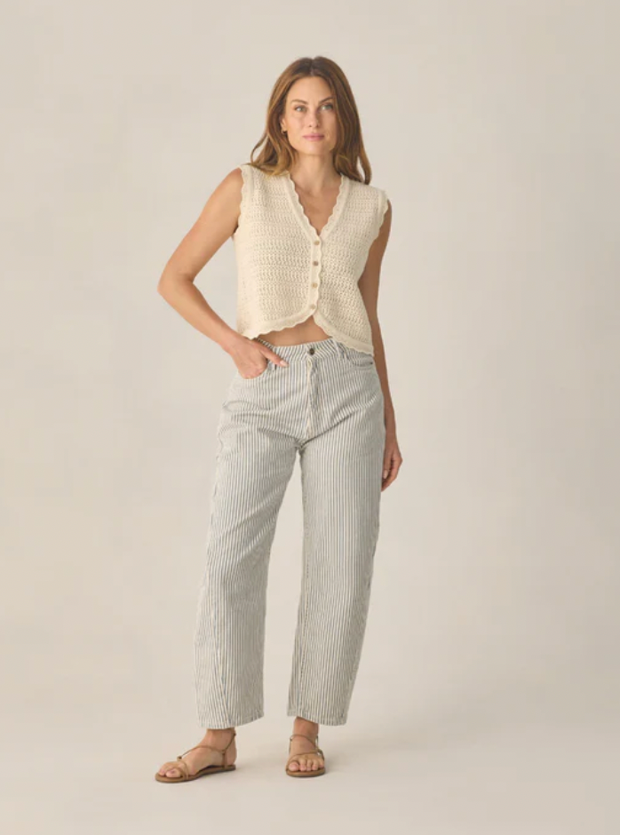 Featuring our 'railroad stripe' print on our 'natural' denim.