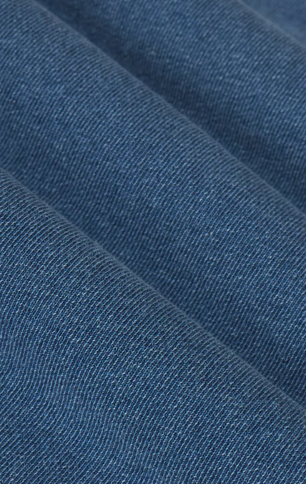 • Knit Denim French Terry: 85% Cotton, 15% Polyester